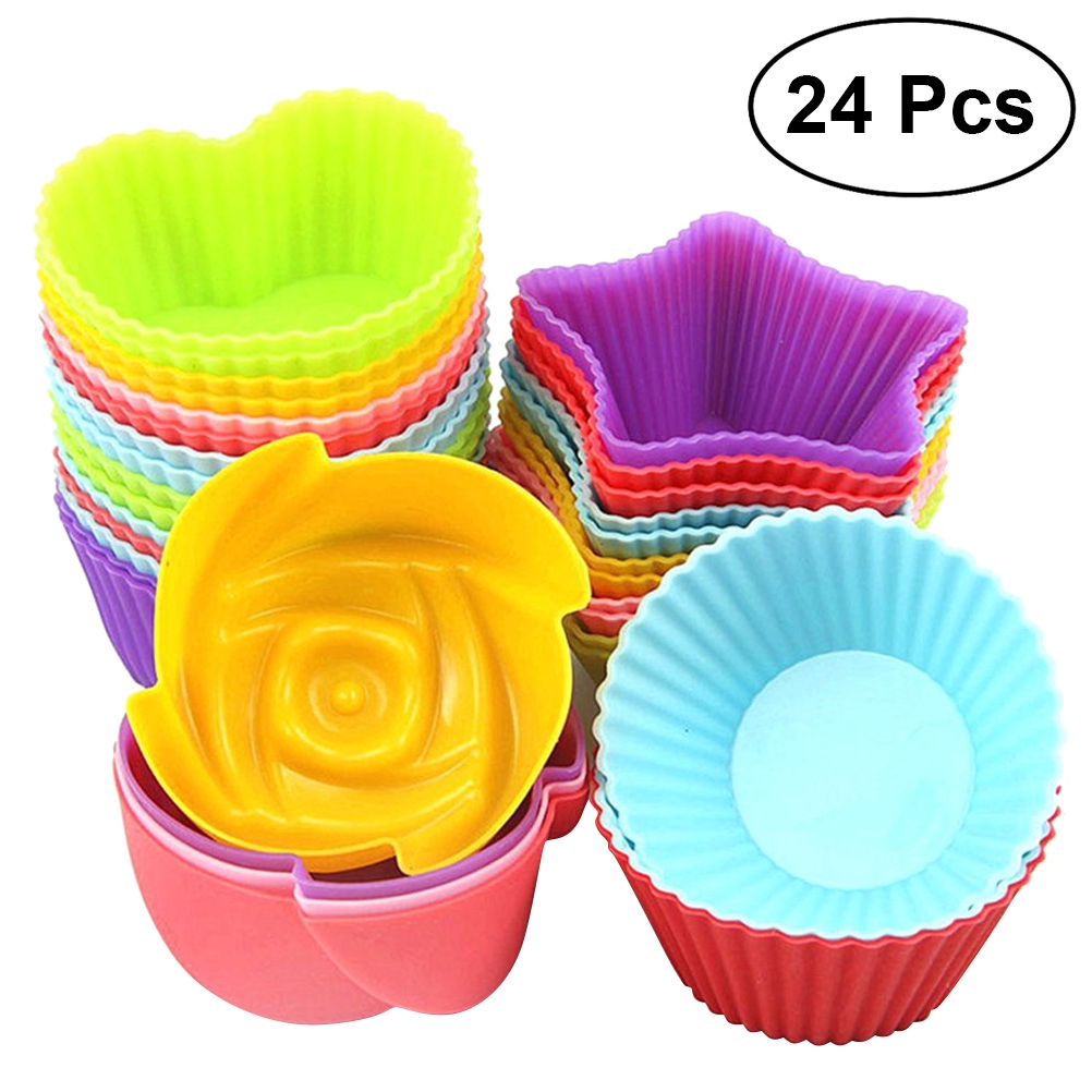 24pcs Silicone Muffin Baking Cups Silicon Cupcake Liners Non Stick Cake Molds Stackable Soap Moulds Shopee Philippines